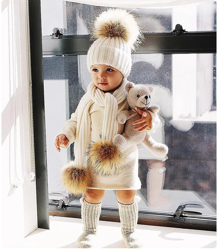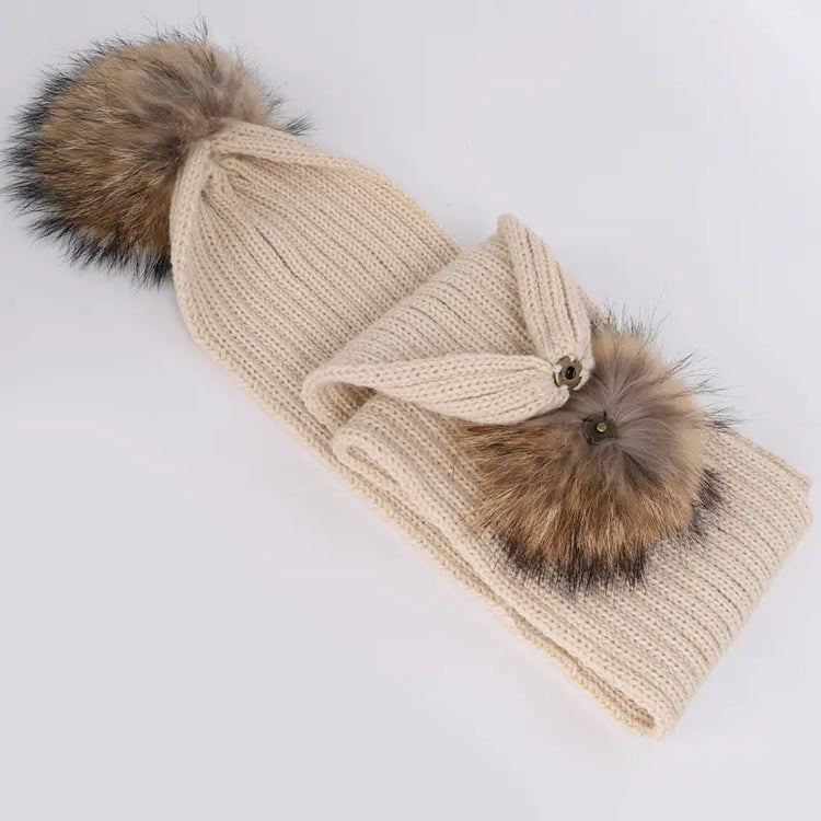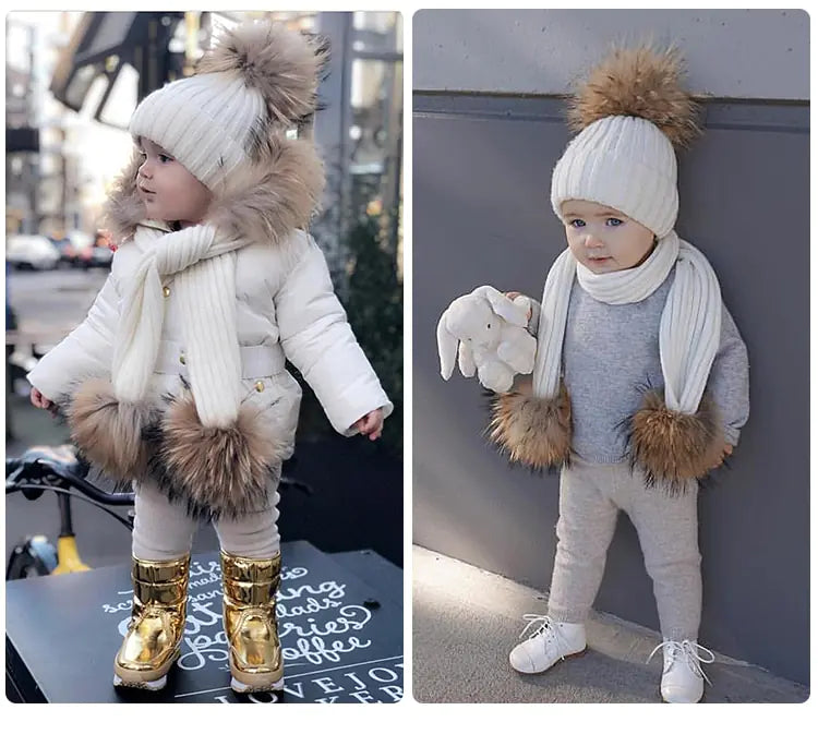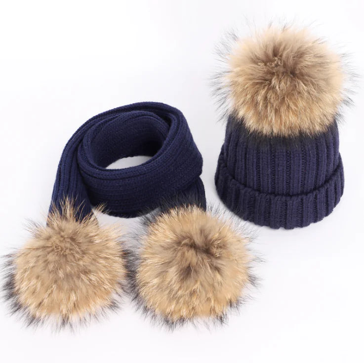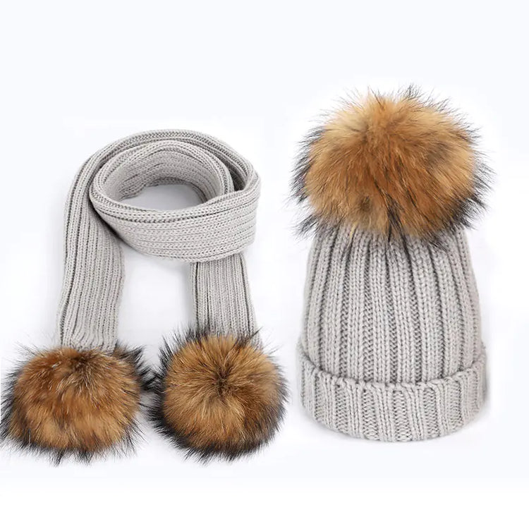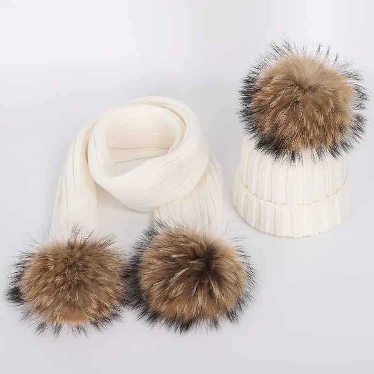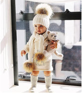 Embrace the season with our children's pompom hat and scarf set, where comfort meets style!