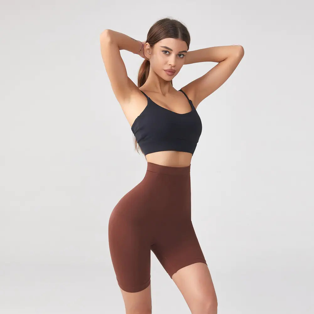 Thin, seamless high-waist shorts made of nylon fabric. Designed for hip lifting and belly contracting, ideal for running and fitness. Available in multiple sizes and colors. Comes with one pair of shorts per pack.