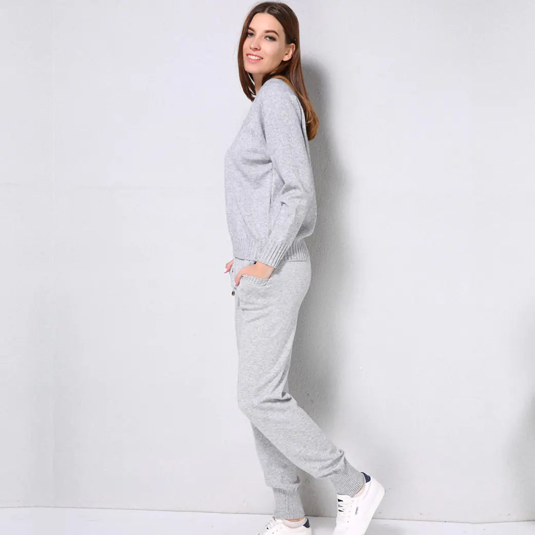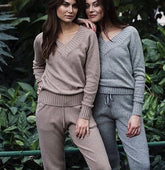 Women's V-Neck Sweater and Pants Knitted Set 2020